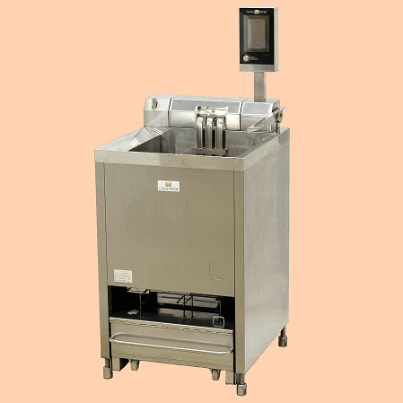 揚げ物が増えると油の中に揚げカスが溜まり、油を劣化させてしまいます。しかし油槽内の揚げカスを取り除くには一度排油してお掃除、給油といった作業になり、営業時間内に行うのは難しいのが実情です。揚げカス自動排出機構を持つCFT-18xはボタン一つで揚げカスを自動排出し、揚げカス排出で減った油槽内の油を自動で補充します。これにより営業時間内でも調理を止めることなく揚げカスを排出することが出来、油の劣化を抑えます。