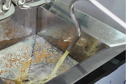 ろ過機は油をろ過するだけではありません。ろ過機を使ってフライヤーの油槽をお掃除することが出来ます。油槽の汚れは油汚れなので「油の汚れは油で落とす」のが最適。汚れを洗い落とした油は、ろ過機のフィルターを通して汚れを取り除くことが出来るので油を再利用出来ます。