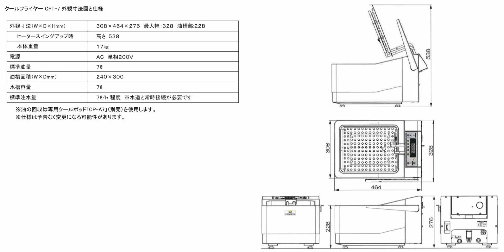 CFT-7はCFT-18xと同じクールフライヤーテクノロジーを搭載した小規模店舗向けの小型フライヤーです。