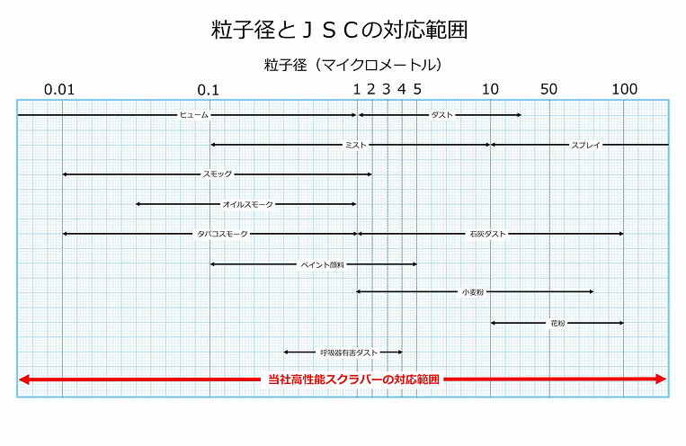 当社のスクラバーは水粒子を使って空気中の汚れを取り除きます。空気中の汚れの元となるあらゆる大きさの粒子に対応しておりますので、厨房から工場まであらゆる環境に対応できます。1969年の発売以来、全世界で400社以上の実績を誇っております。